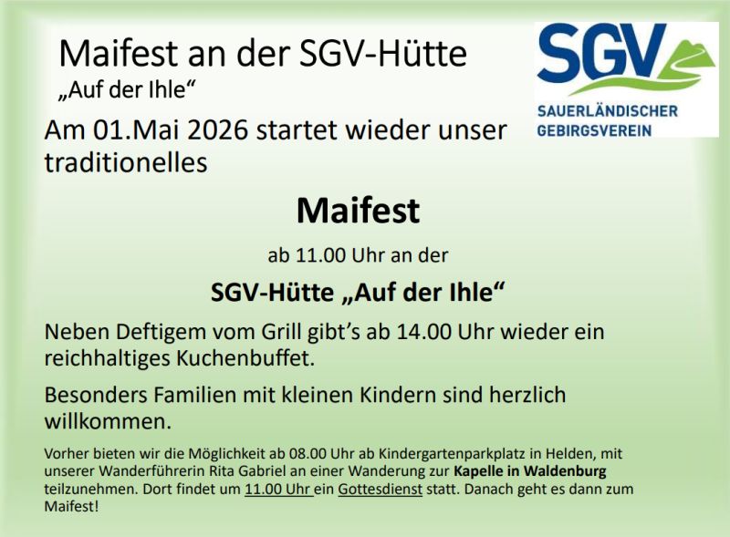 Maifest – SGV Repetal lädt zur SGV-Hütte “Auf der Ihle”